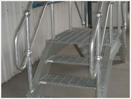 樓梯鋼格板是由鋼格板加工而成的(鋼格板是用扁鋼按照一定的間距和橫桿進(jìn)行交叉排列,并且焊接成中間帶有方形格子的一種鋼鐵制品)。該產(chǎn)品表面一般用熱鍍鋅、電鍍鋅處理。