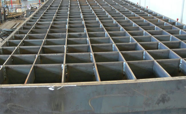 鋼格柵準備:安裝前檢查;鋼格柵分區域就位;臨時(shí)固定;偏差測量;偏差校正;最終固定,詳細操作請撥打客服電話(huà)操作方法:依照排版設計圖的要求準確定位放線(xiàn);將鋼格柵按排版設計的編號分區域就位,同時(shí)分區域安裝,完成一個(gè)區域后進(jìn)行下一個(gè)區域的安裝,每個(gè)區域內應由中間向兩邊開(kāi)展;安裝時(shí)根據規范要求嚴格控制鋼格柵之間、鋼格柵與其他結構之間的間距;鋼格柵就位后先用安裝夾做臨時(shí)固定,經(jīng)偏差測量并進(jìn)行校正后再做最后固定;鋼格柵按圖示方向排列,遇到H型鋼柱時(shí)鋼格柵開(kāi)口,開(kāi)口處用鋼板作100mm(高)×6mm踢腳板。鋼格柵安裝后如不需移動(dòng),可將其焊接在支架上或鋼梁上,焊后去除焊渣和飛濺,手工涂?jì)傻栏讳\漆。